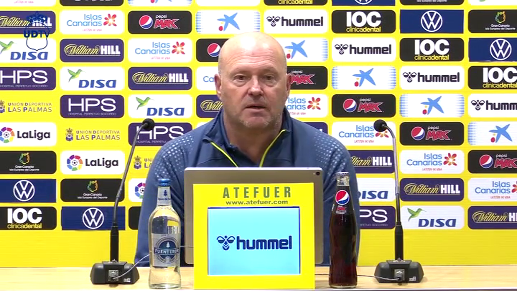 El técnico madrileño cree que sería un «error gravísimo» pensar en el encuentro del día 28 en el Heliodoro Rodríguez López, y centra sus esfuerzos en el que le medirá al cuadro catalán en el Estadio de Gran Canaria, con el que está igualado a 39 puntos y que abrirá la trigésima jornada de LaLiga SmartBank.
